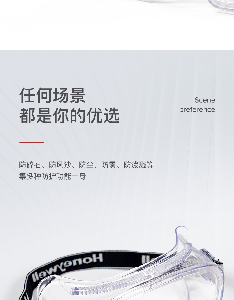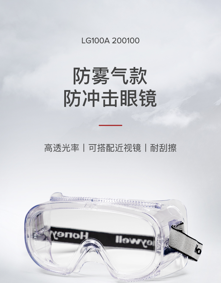 霍尼韦尔 200100 LG100A 实验室防飞溅护目镜,采用新“中国尺码”数据库,专为中国人脸型设计。
